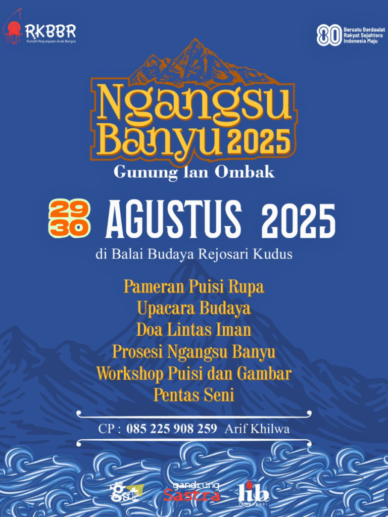 π€ Pameran Puisi Rupa; Workshop Puisi & Gambar; Doa Lintas Iman; Upacara Budaya; Prosesi Ngangsu Banyu; Pentas & Dialog Seni