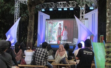 Saya mengambil tempat di salah satu kursi itu, menatap layar yang lebar yang berdiri sederhana namun tegar di depan semua orang di ruang terbuka. Lampu-lampu kecil tergantung di beberapa sudut, menambah nuansa magis yang tak saya temukan di bioskop-bioskop modern. Ini bukan sekadar pemutaran film. Ini perayaan sunyi yang mengajak penonton menanggalkan dunia luar, masuk ke ruang yang lebih dalam: ruang batin, ruang kesadaran, ruang perenungan.