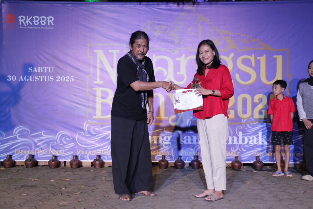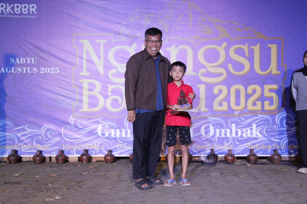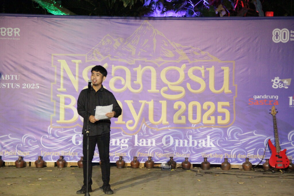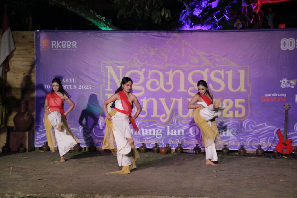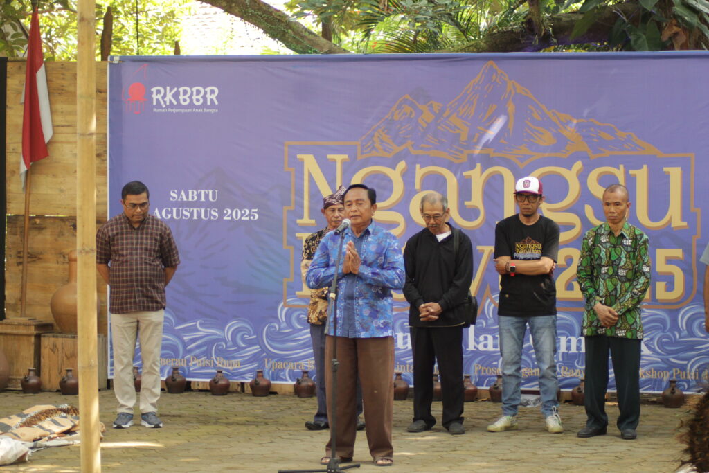 Gelar Ngangsu Banyu 2025 mengangkat tema “Gunung lan Ombak”. Kegiatan ini hasil kerja kolaboratif: RKBBR dengan Gandrung Sastra, GsT Production dan Iniibubudi Publishing. Ada 6 mata acara utama dalam Ngangsu Banyu tahun ini, yakni: Pameran Puisi Rupa “APA”, Doa dan Macapatan, Upacara Budaya, Prosesi Ngangsu Banyu, Workshop Penulisan Puisi dan Gambar untuk Remaja dan Malam Pentas Seni, yang berlangsung pada 29-30 Agustus 2025.