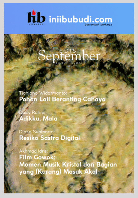 Edisi September 2025, INIIBUBUDI menayangkan esai Djoko Subinarto mengenai sastra digital dan Akhmad Idris menyoal film “Gowok”. Kemudian puisi-puisi yang tayang pada edisi kali ini karya Tjahjono Widarmanto, penyair yang juga seorang guru di Ngawi, Jawa Timur, dan sebuah cerpen “Adikku, Mala” karya Dairy Rahmi cerpenis kelahiran Manado yang saat ini berdomisili di Jakarta. Sebuah esai khusus merespon kegiatan Pemaran Puisi Rupa karya Putut Pasopati di Rumah Khalwat Balai Budaya Rejosari, Kudus, karya Imam Khanafi juga kami hadirkan. Selamat menikmati, dan teriring salam hangat. Terimakasih.